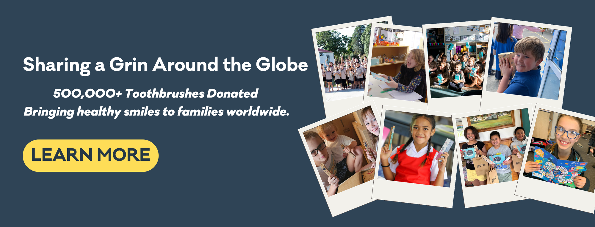 Share A Grin PageEach year, we donate 2% of our global revenue through in-kind contributions and educational resources to support better oral health for children and families in need.