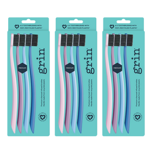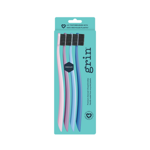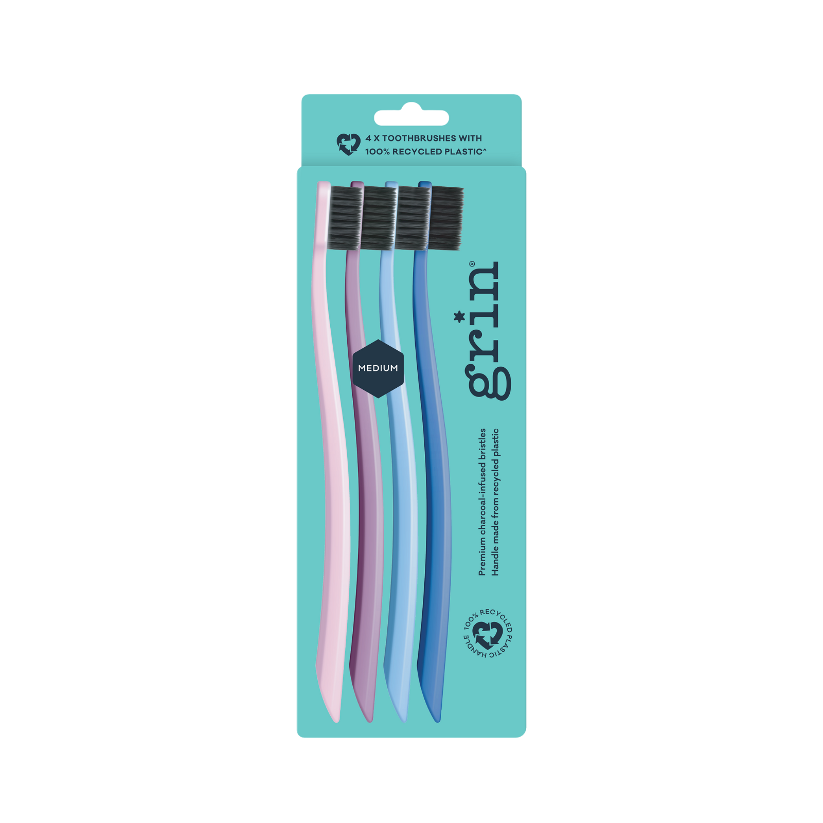 Grin 100% Recycled Toothbrush 4pk Purple (Medium)