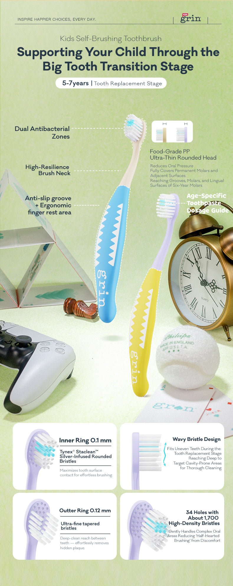 PRE-ORDER Grin Kids Power Smile Toothbrush 5-7 Years
