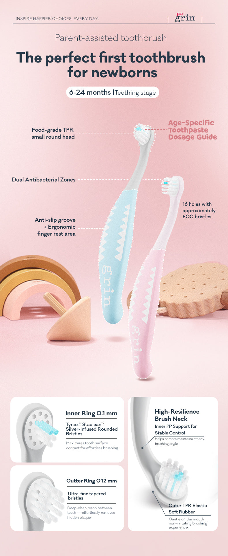PRE-ORDER Grin Kids Milky Start Toothbrush for 6-24 Months