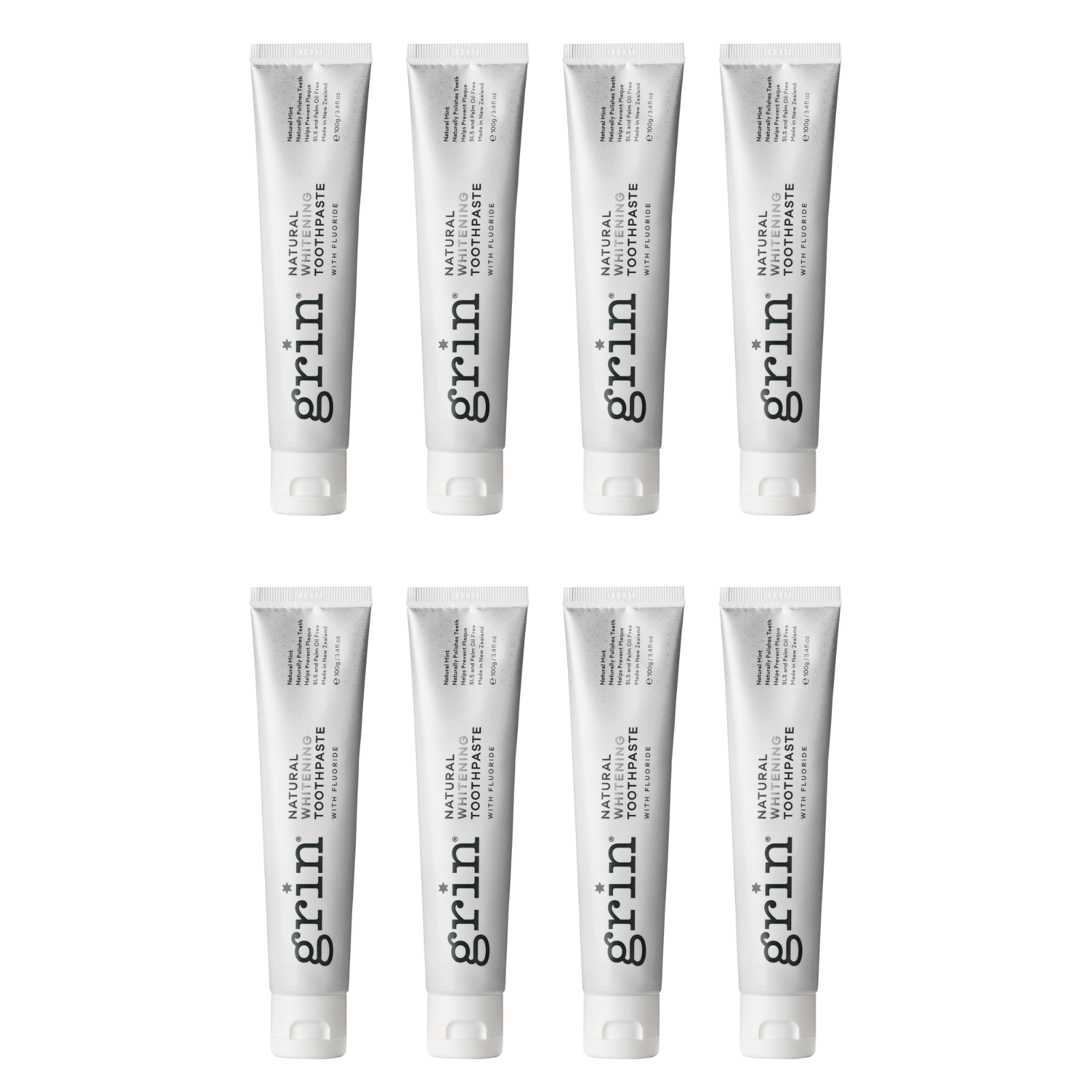 Grin’s natural Whitening with fluoride toothpaste delivers you a thorough, fresh, flash-those-pearly-whites clean – without the need for harsh chemicals or bleaching agents! The active ingredients; Baking Soda, Propolis, Organic Sea Salt and Sodium Monofluorophosphate (fluoride), work to restore the natural whiteness of your teeth by gently removing stains and keeping bacteria in check.