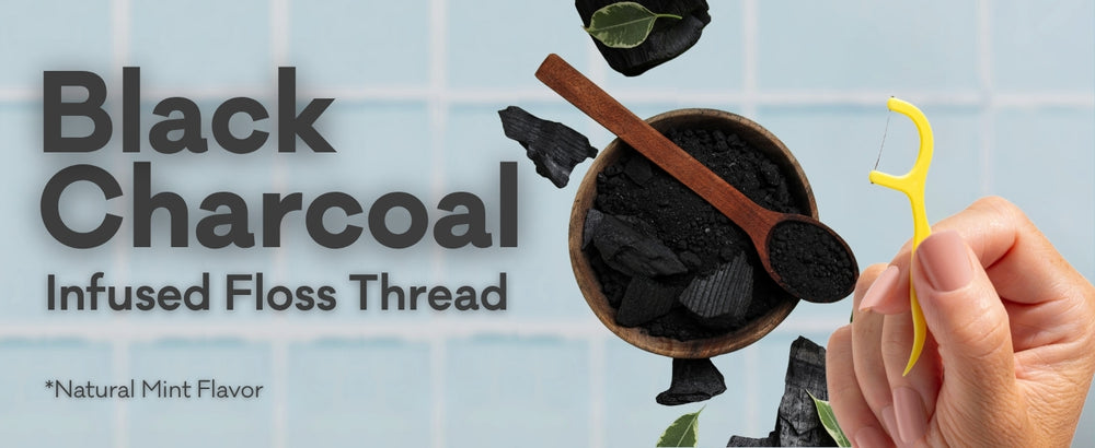 100% Recycled Plastic Handle, Premium UHMW PE Floss Thread - infused with Charcoal, Natural Mint Flavour. Recyclable packaging.